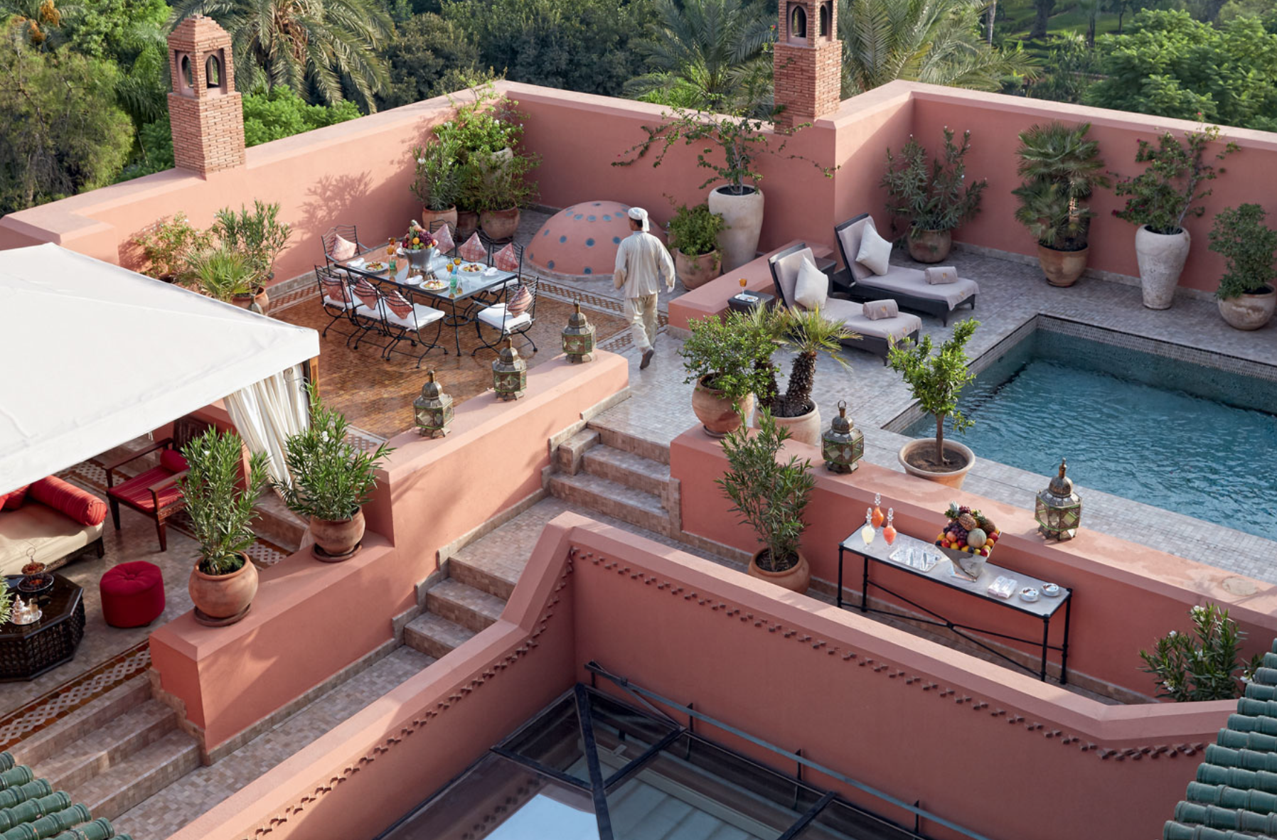 Underneath the opulence of the hotel’s best-in-class architecture and interior detailing the design features an intricate network of underground tunnels to each of the property’s 53 riads, accessible only by staff, ensuring the highest levels of privacy and discretion to complete this royal hospitality service.